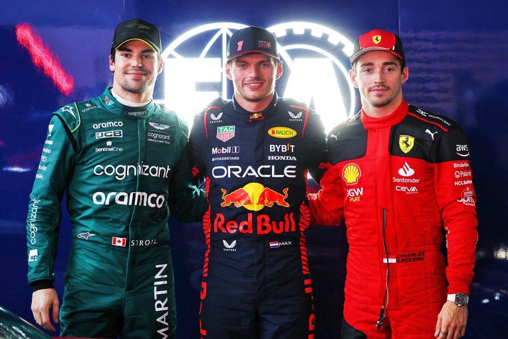 2023年F1第21戦サンパウロGP PPのマックス・フェルスタッペン、2番手シャルル・ルクレール、3番手ランス・ストロール