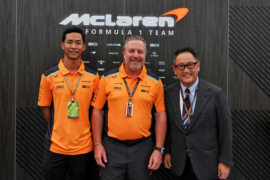 2023年F1第17戦日本GP 平川亮/ザック・ブラウンCEO/モリゾウ(トヨタ自動車豊田章男会長)