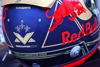 土曜日のスプリントでワールドチャンピオンになったレッドブルF1マックス・フェルスタッペンは日曜日にチャンピオン仕様の新ヘルメットで登場。21、22、23と描かれた3つの星が誇らしげだ。
