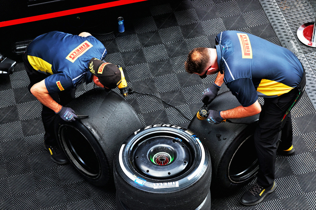 セッション後にタイヤの状態を確認するピレリのスタッフ/2023年F1第15戦イタリアGP