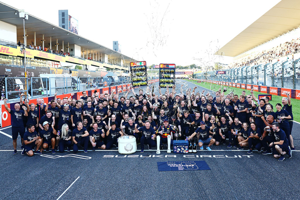 2023年F1第17戦日本GP表彰式 クリスチャン・ホーナー代表&マックス・フェルスタッペン(レッドブル)