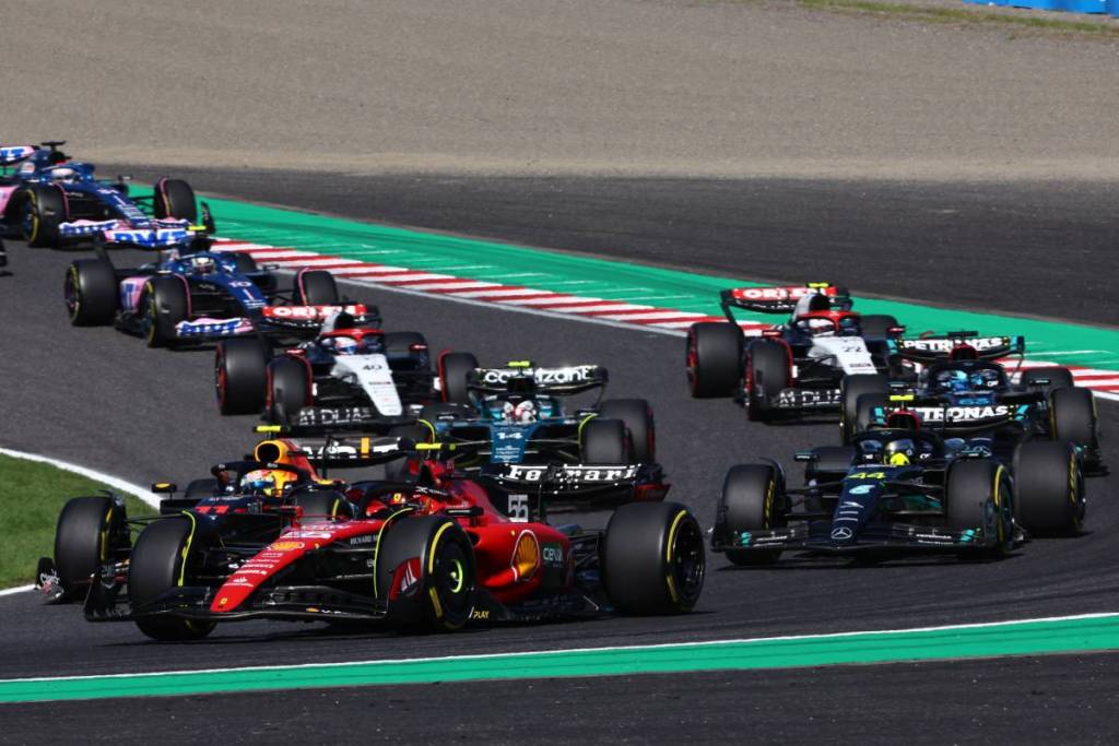 2023年F1第17戦日本GP ルイス・ハミルトン(メルセデス)、ジョージ・ラッセル(メルセデス)、カルロス・サインツ(フェラーリ)