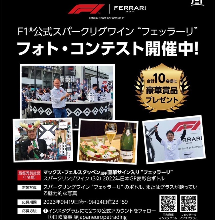 F1公式スパークリングワイン『フェッラーリ』がフォトコンテストを開催中だ。