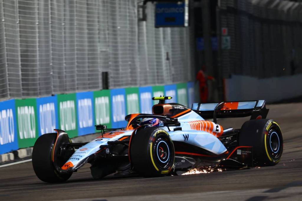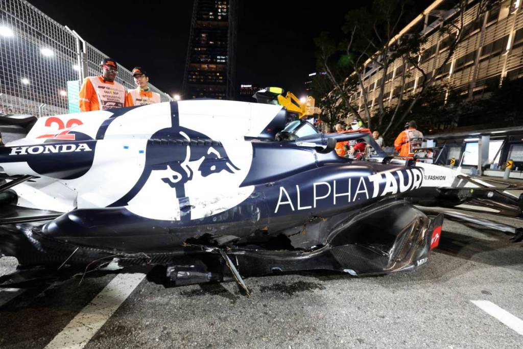 2023年F1第16戦シンガポールGP セルジオ・ペレス(レッドブル)との接触で車体右側にダメージを負った角田裕毅(アルファタウリ)のマシン