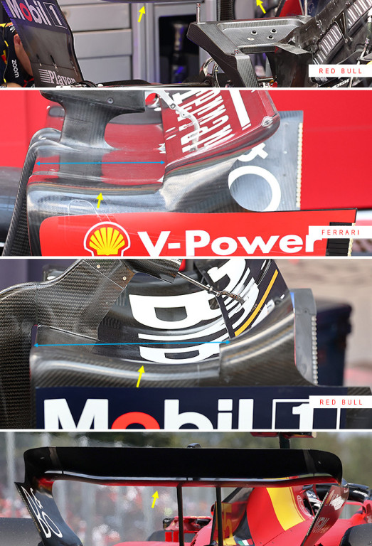 フェラーリSF-23とレッドブルRB19のウイング比較(F1イタリアGPとベルギーGP)