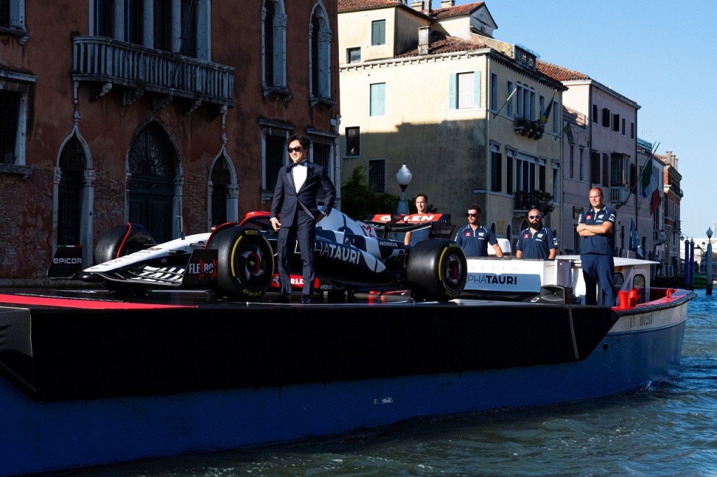 アルファタウリF1のドキュメンタリー映画のワールドプレミアが開催。角田裕毅がAT03とともにベネチアの運河を航行
