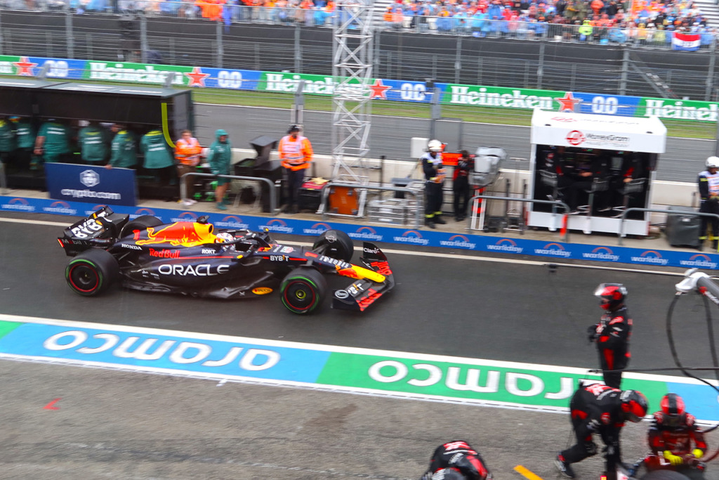 ピットロードを走行するマックス・フェルスタッペン(レッドブル)