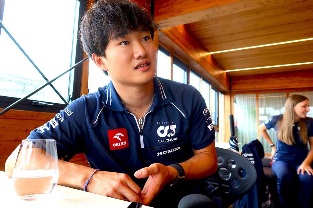 インタビューを受ける角田裕毅(アルファタウリ)