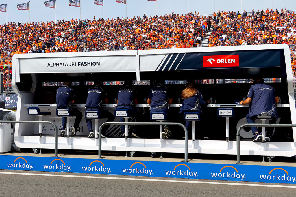 アルファタウリのピットウォールスタンド