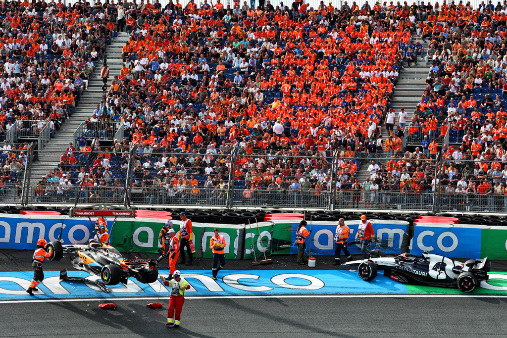 2023年F1第14戦オランダGP FP2でクラッシュしたオスカー・ピアストリ(マクラーレン)とダニエル・リカルド(アルファタウリ)