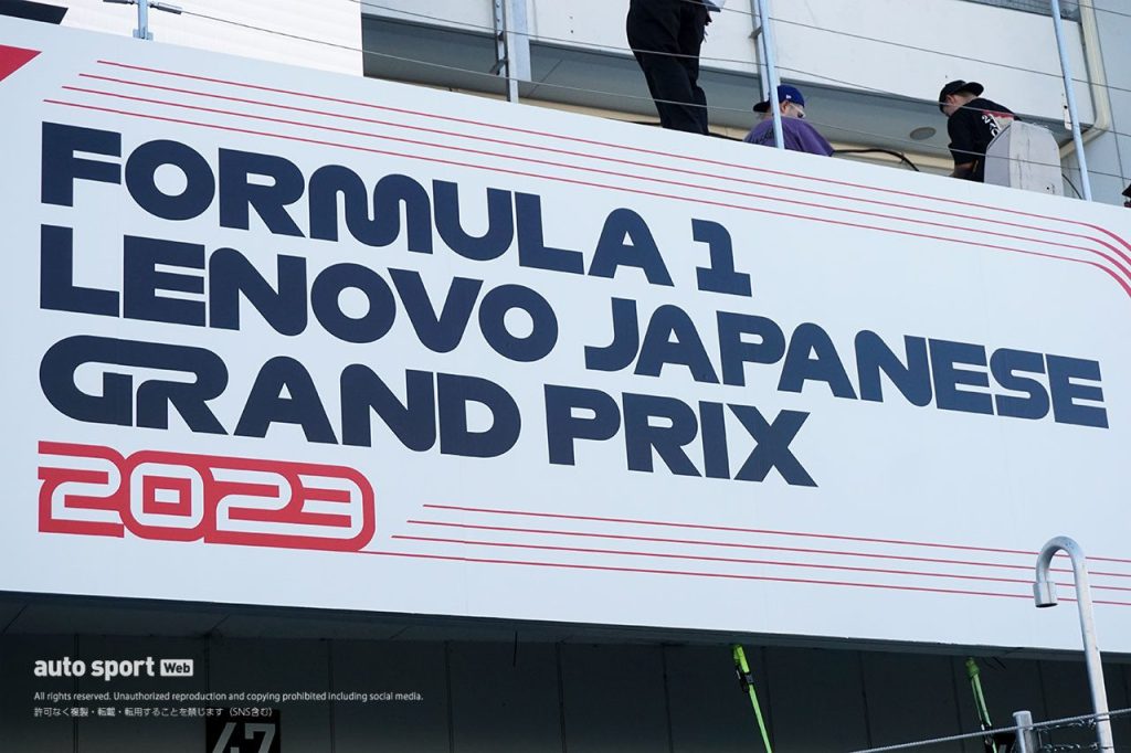 鈴鹿サーキットの表彰台下に描かれている2023年F1日本GPのロゴ