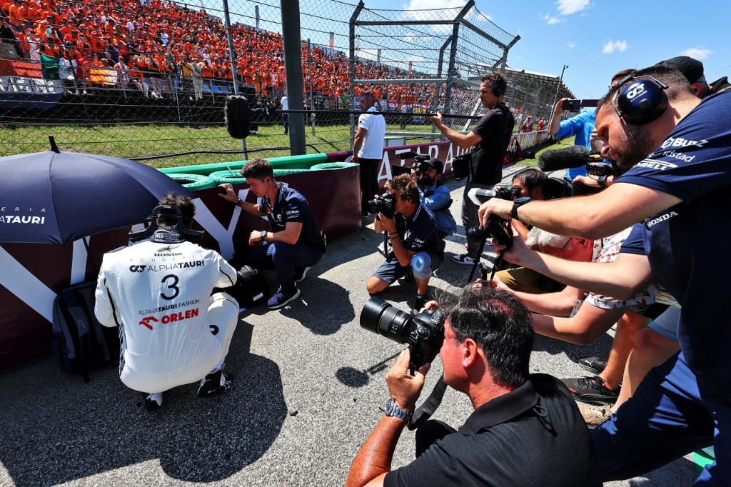 2023年F1第12戦ハンガリーGP スタート直前のダニエル・リカルド(アルファタウリ)を撮影するカメラマンたち