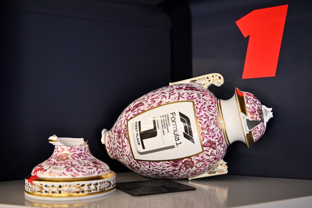 2023年F1第12戦ハンガリーGP マックス・フェルスタッペン(レッドブル)の壊れた優勝トロフィー