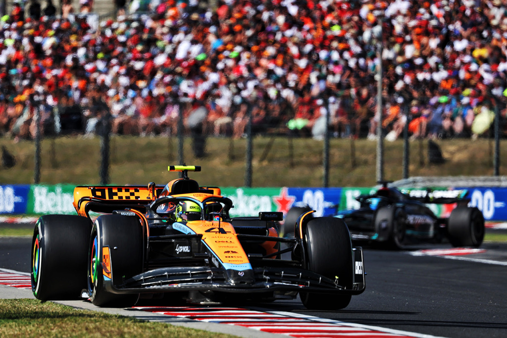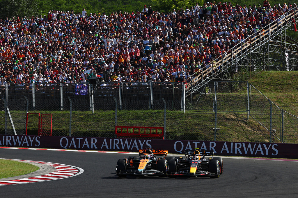 2023年F1第12戦ハンガリーGP オスカー・ピアストリ(マクラーレン)に仕掛けるセルジオ・ペレス(レッドブル)