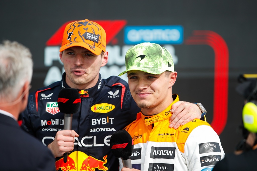 2023年F1第11戦イギリスGP 優勝したマックス・フェルスタッペン(レッドブル)と2位のランド・ノリス(マクラーレン)