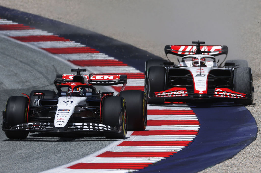 2023年F1第10戦オーストリアGP ケビン・マグヌッセン(ハース)とニック・デ・フリース(アルファタウリ)