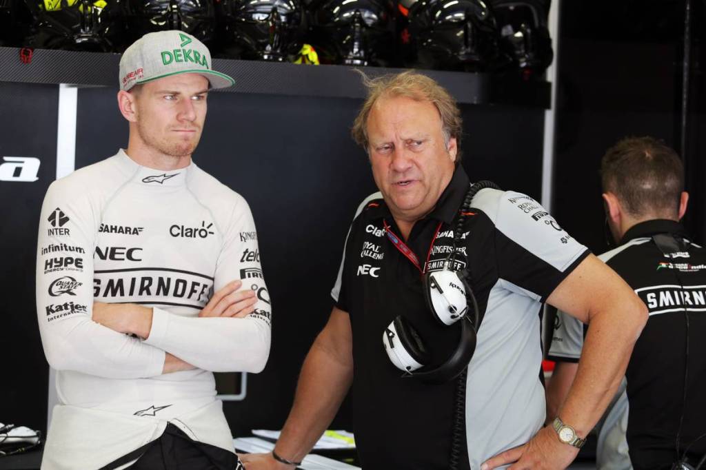 フォース・インディア副代表ボブ・ファーンリー(左)とニコ・ヒュルケンベルグ