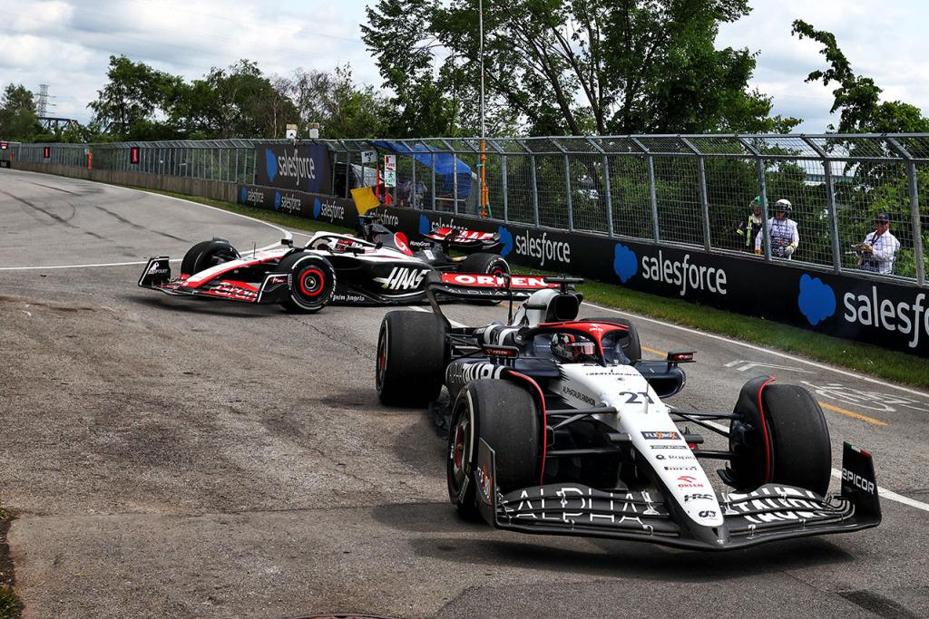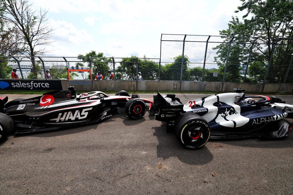 2023年F1第9戦カナダGP エスケープロードに飛び出してしまったニック・デ・フリース(アルファタウリ)とケビン・マグヌッセン(ハース)