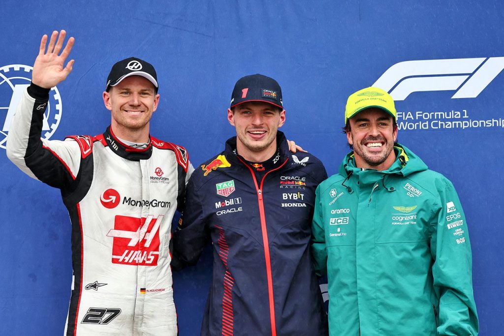 2023年F1第9戦カナダGP 予選ポールのマックス・フェルスタッペン、予選2番手のニコ・ヒュルケンベルグ、予選3番手のフェルナンド・アロンソ