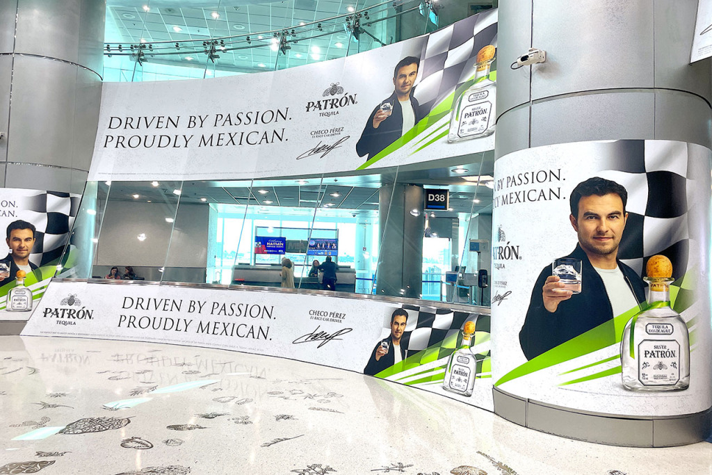 マイアミ国際空港内のパトロンテキーラの広告にはセルジオ・ペレスの姿も