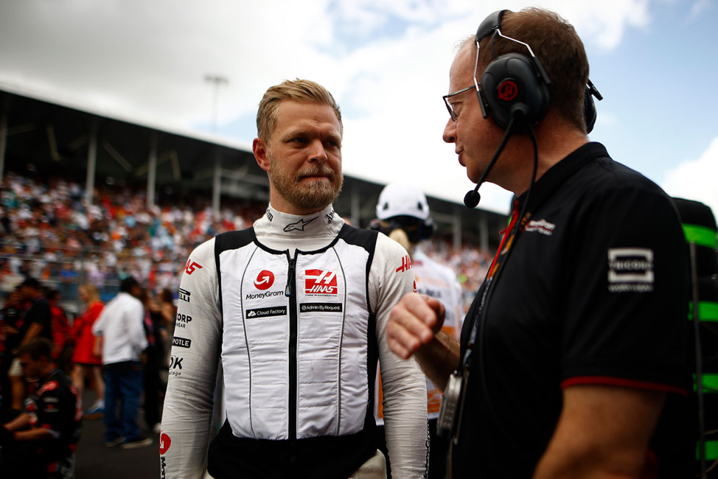 2023年F1第5戦マイアミGP 小松礼雄エンジニアリングディレクター&ケビン・マグヌッセン(ハース)