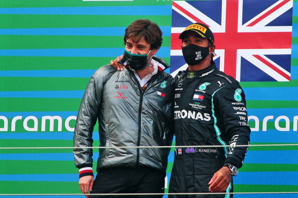 2020年F1アイフェルGP 優勝したルイス・ハミルトン(メルセデス)とレースチーム・コーディネーターのスティーブン・ロード