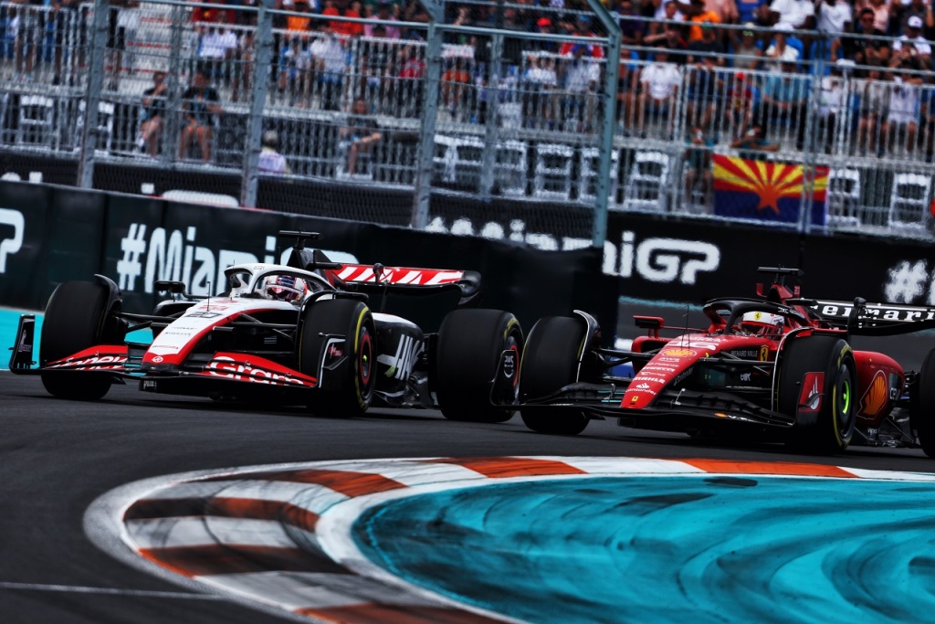 2023年F1第5戦マイアミGP ケビン・マグヌッセン(ハース)とシャルル・ルクレール(フェラーリ)のバトル