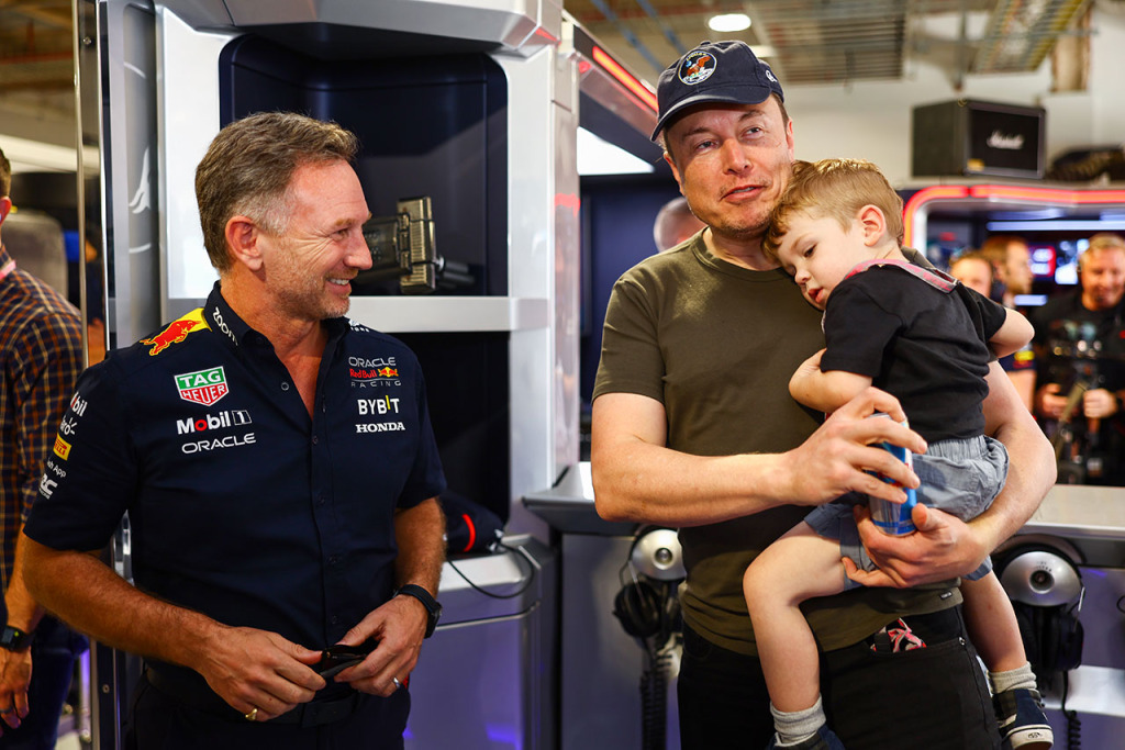 2023年F1第5戦マイアミGP レッドブルのガレージを訪問したイーロン・マスク