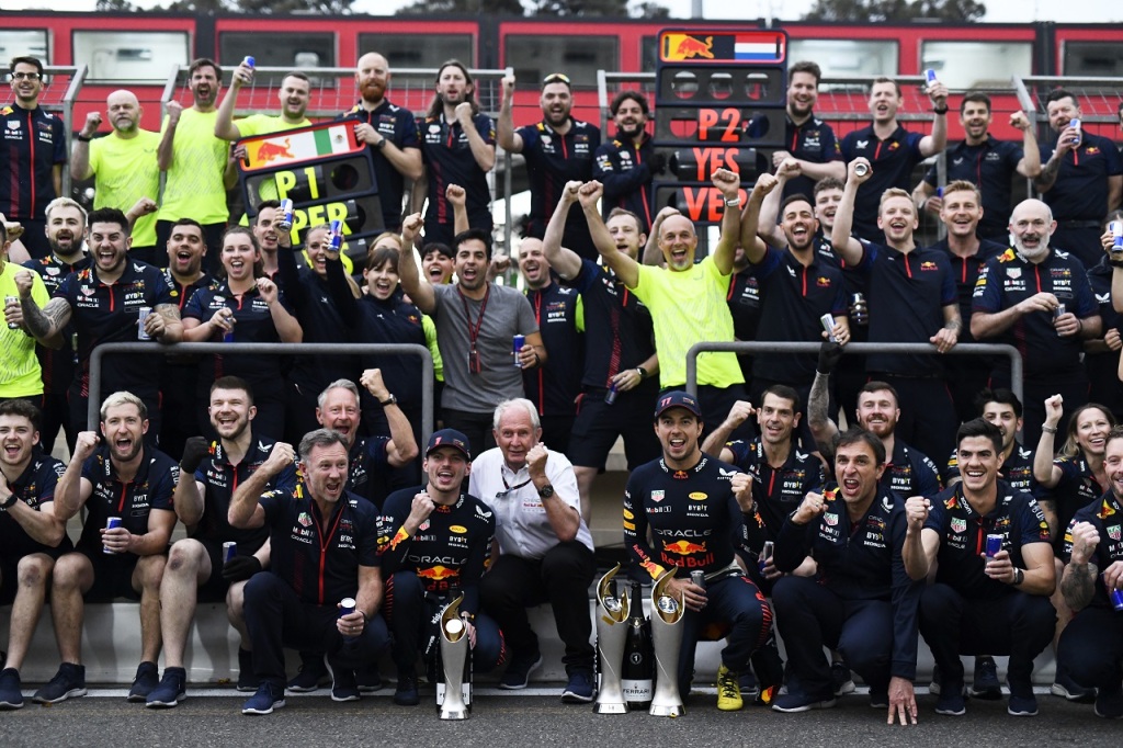 2023年F1第4戦アゼルバイジャンGP レッドブル1−2を祝うチーム