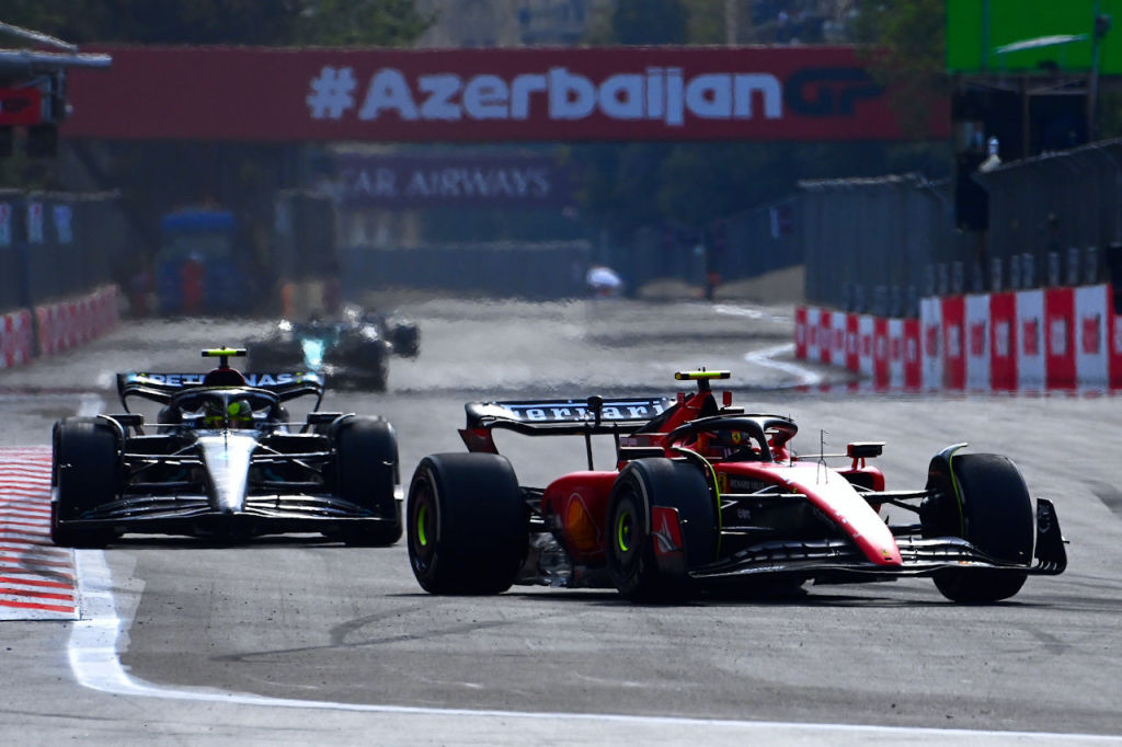 2023年F1第4戦アゼルバイジャンGP カルロス・サインツ(フェラーリ)とルイス・ハミルトン(メルセデス)