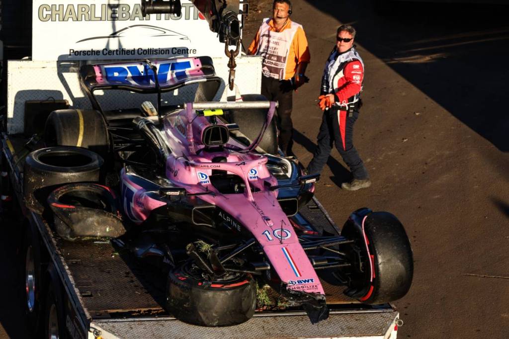2023年F1第3戦オーストラリアGP クラッシュ後に回収されたピエール・ガスリー(アルピーヌ)のマシン
