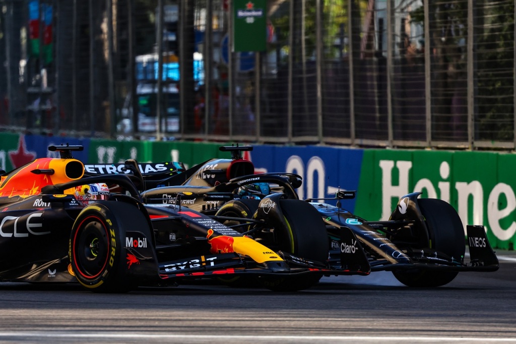 2023年F1第4戦アゼルバイジャンGPスプリント マックス・フェルスタッペン(レッドブル)とジョージ・ラッセル(メルセデス)