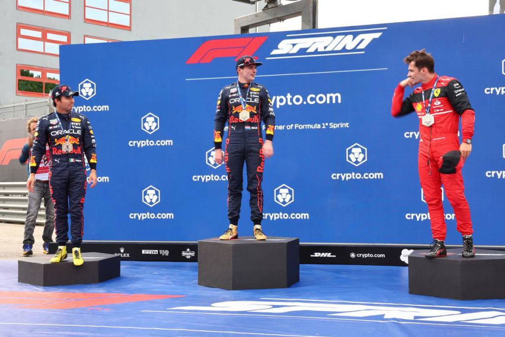 マックス・フェルスタッペン(レッドブル)、シャルル・ルクレール(フェラーリ)、セルジオ・ペレス(レッドブル)