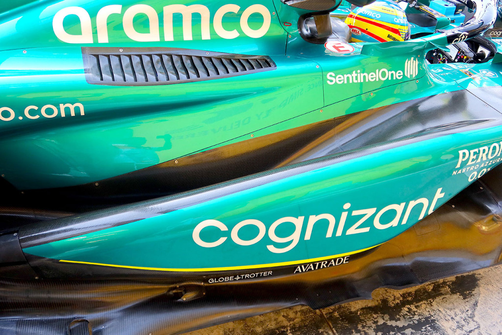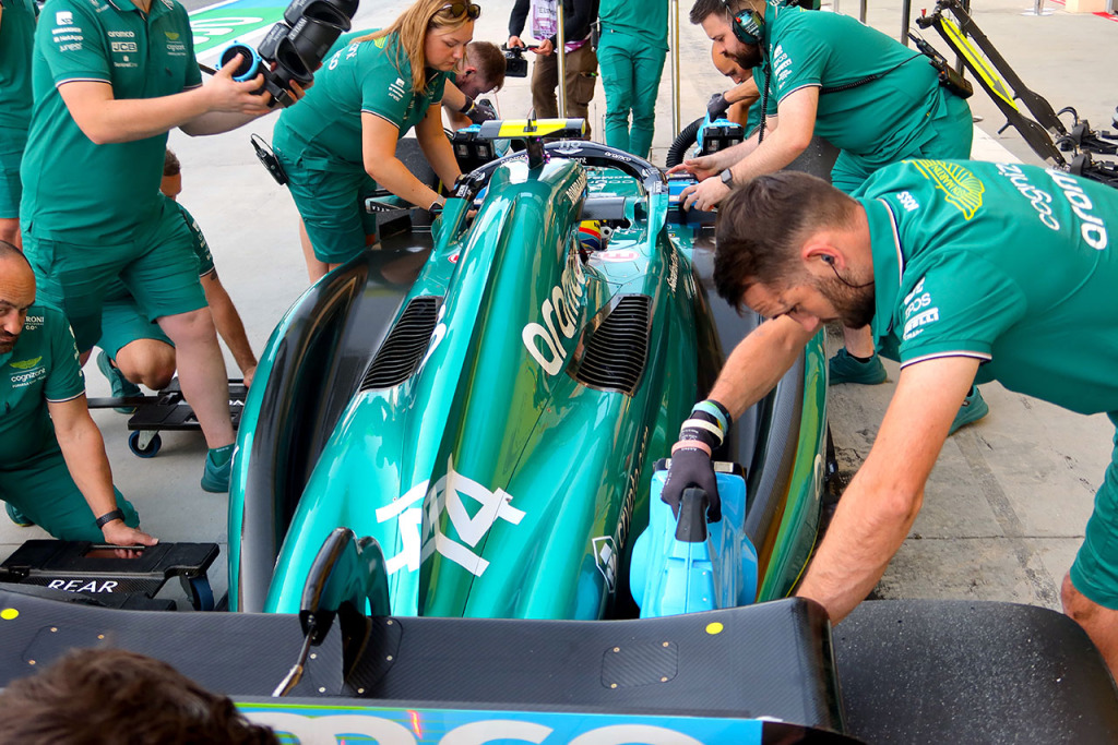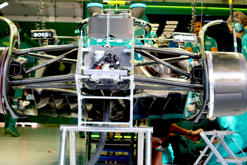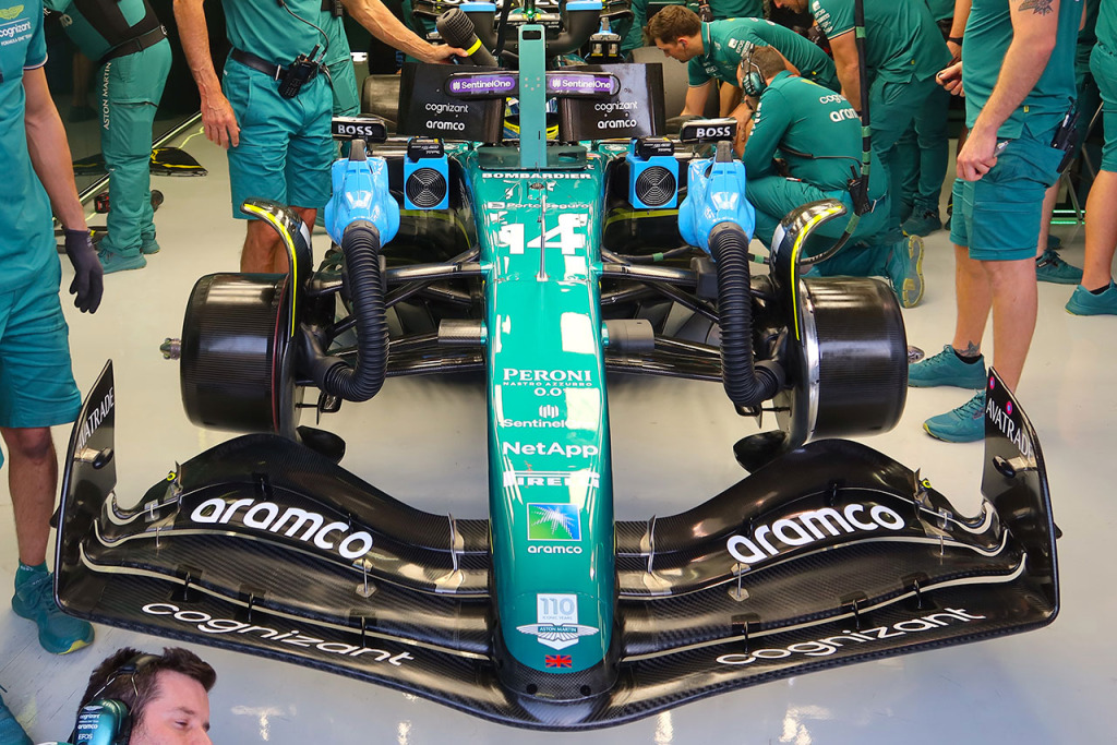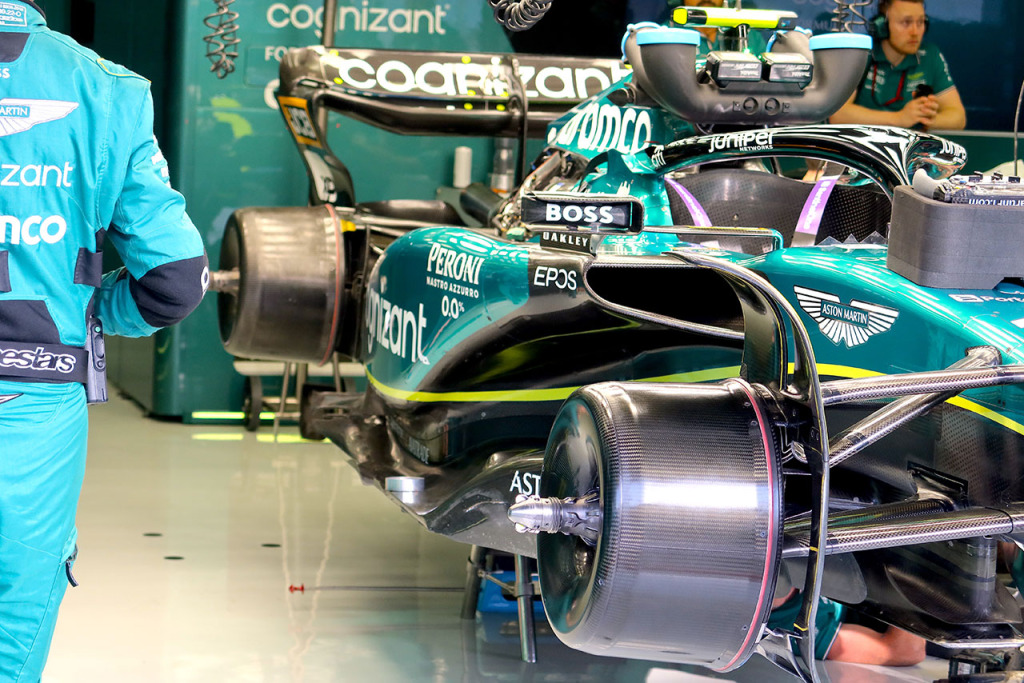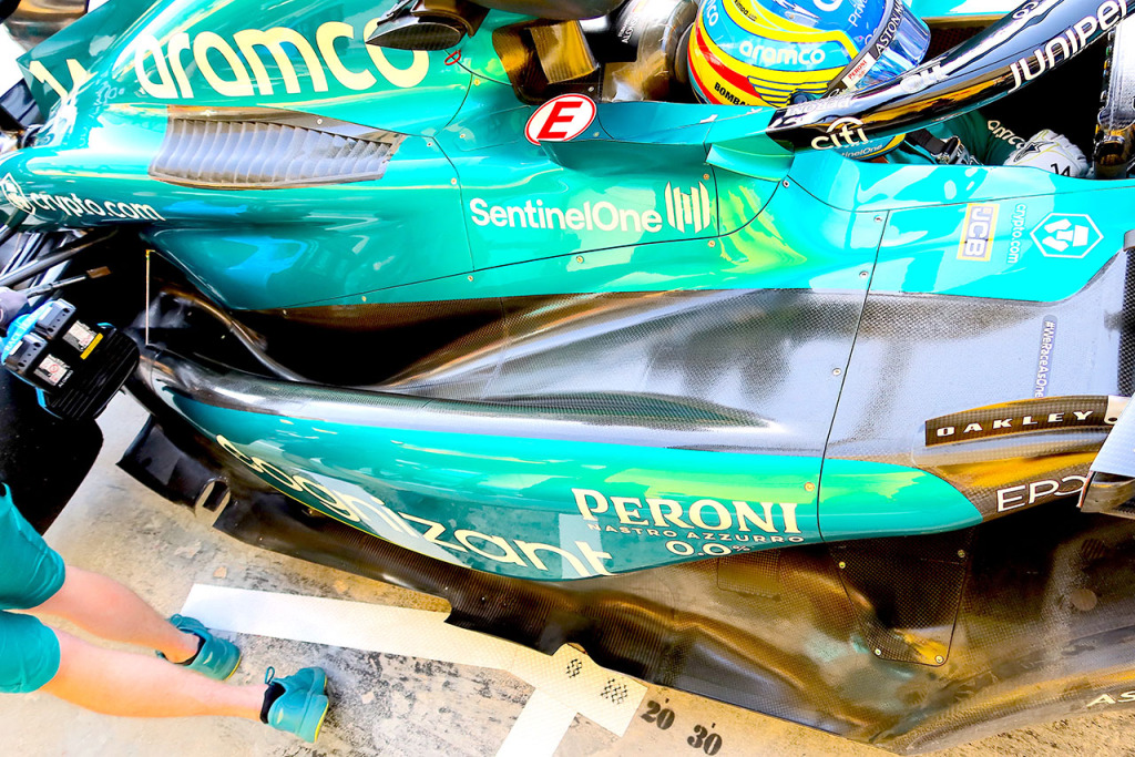 【F1テスト新車情報:アストンマーティン】特徴的なサイドポンツーンを持つAMR23。入り口の形状やくぼみに注目