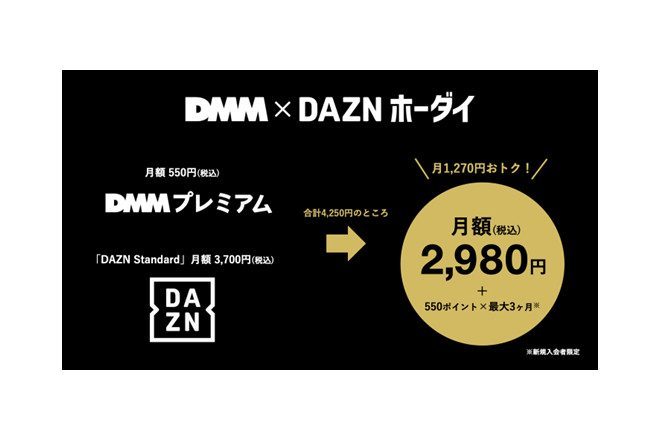 『DMM×DAZNホーダイ』では、個別で両プランを契約した場合に比べ月1270円お得となる