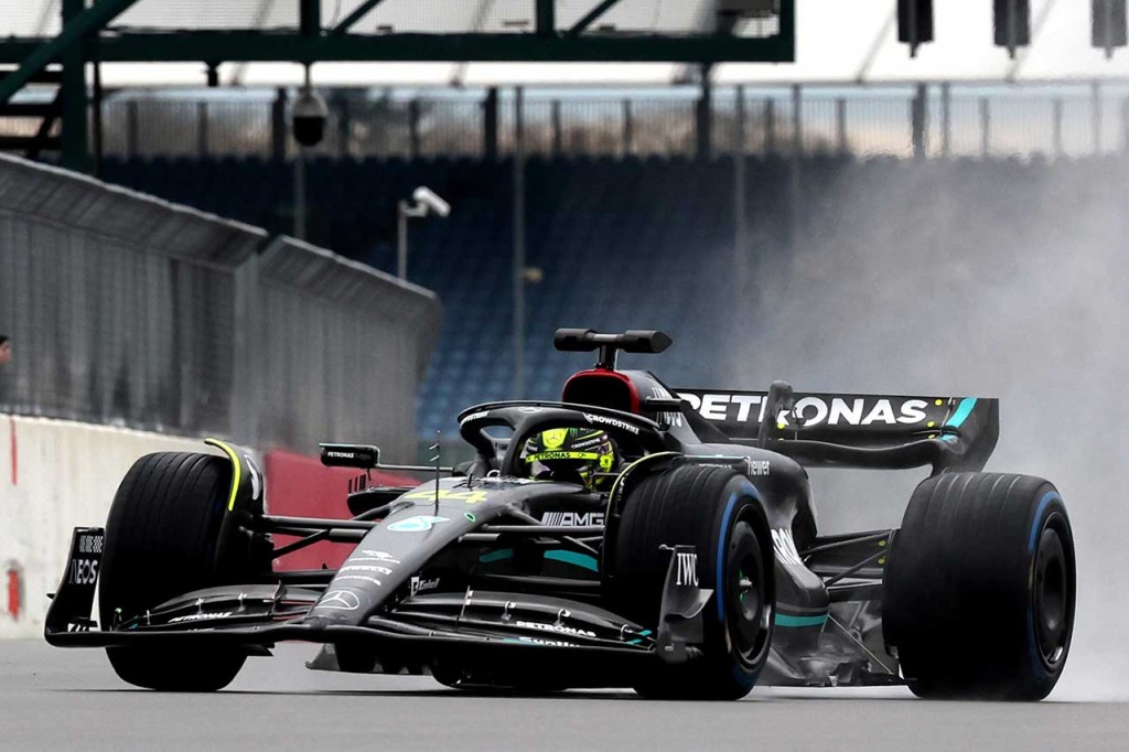 メルセデスF1の2023年型マシン『W14』のシェイクダウンを行うルイス・ハミルトン