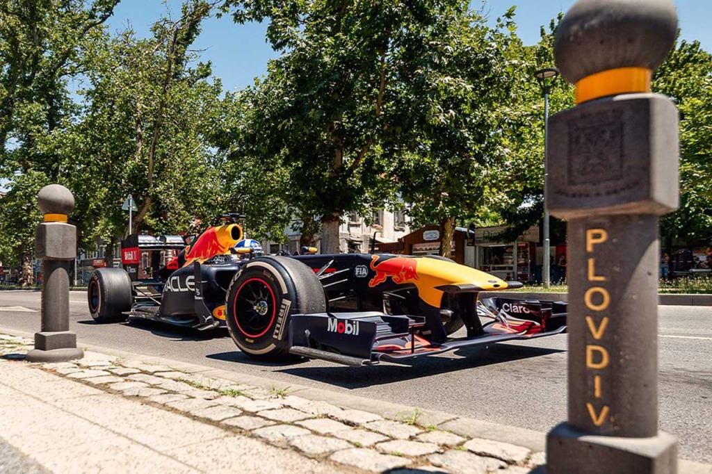 レッドブルRB7を駆りブルガリア第2の都市プロヴディフを駆け抜けるデイビット・クルサード