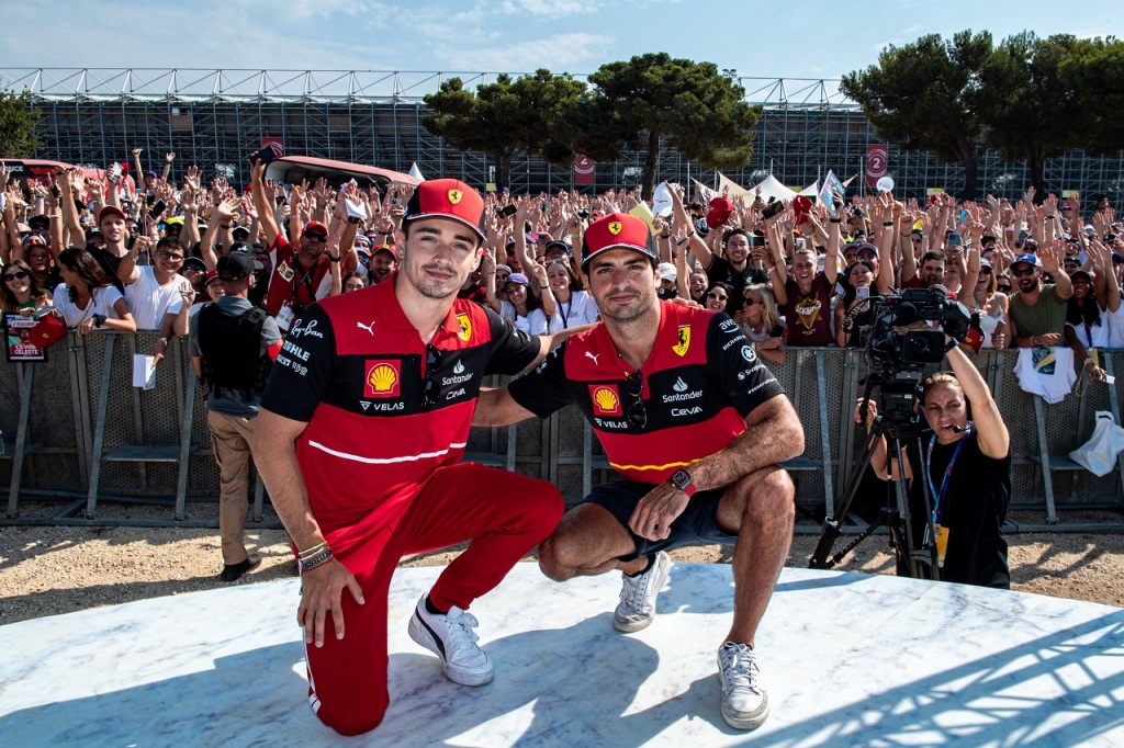 2022年F1第10戦イギリスGP カルロス・サインツ(フェラーリ)の初優勝を祝うチーム