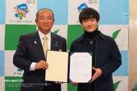 今回新たに、相模原市はホームタウンチーム制度の個人版に相当する制度として、個人競技の現役アスリートを対象とする『相模原市ホームタウンアスリート』制度を創設。角田を相模原市ホームタウンアスリートの第1号として認定し、その認定式が12月29日に相模原市中央区の模原市役所本庁舎本館1階ロビーにて行われた。