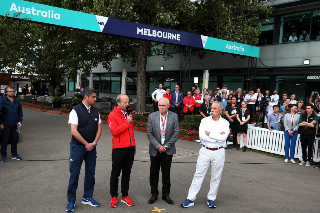 2020年F1オーストラリアGP/左からマイケル・マシ(FIAレースディレクター)、アンドリュー・ウェスタコット、ポール・リトル(オーストラリアGPコーポレーション)、チェイス・キャリー(F1CEO)