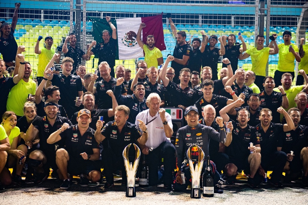 2022年F1第17戦シンガポールGP セルジオ・ペレス(レッドブル)の優勝を祝うチーム