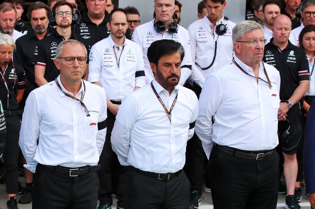 2022年F1イタリアGP (左から)F1 CEOステファノ・ドメニカリ、FIA会長モハメド・ビン・スライエム、F1モータースポーツ担当マネージングディレクターのロス・ブラウン