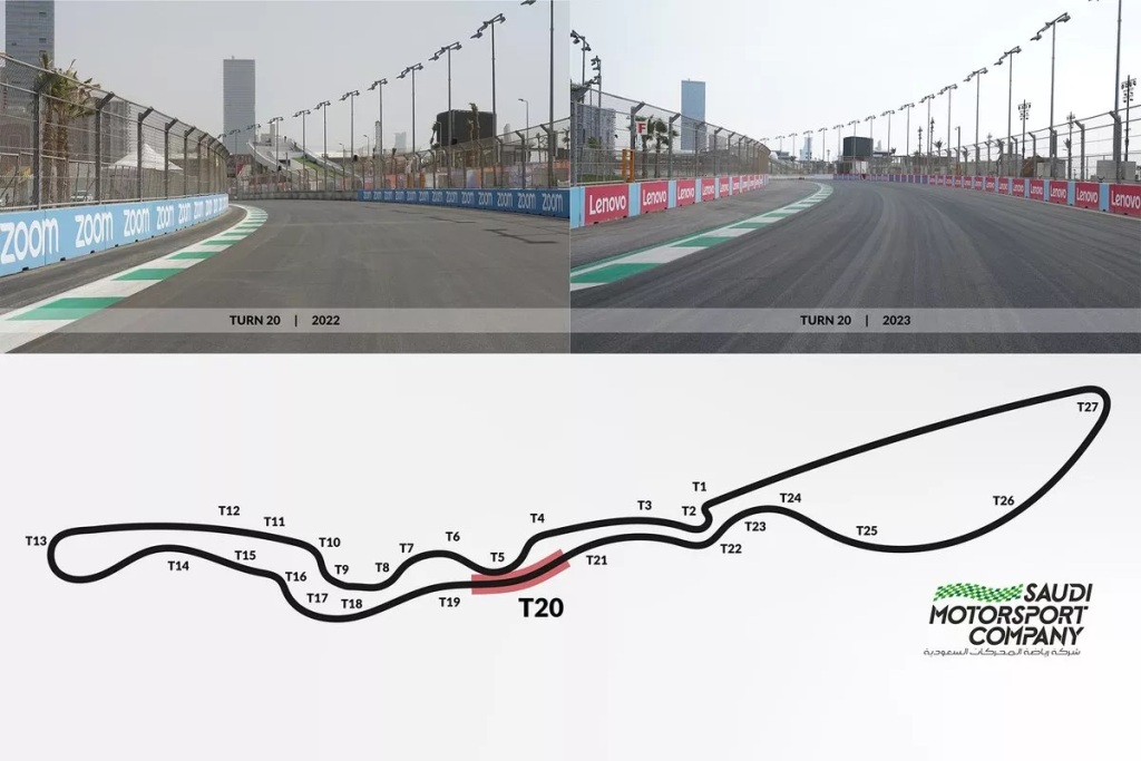 F1サウジアラビアGPのコースを再び改修。安全性と視界のさらなる改善を目指し、ウォールの位置や縁石を変更
