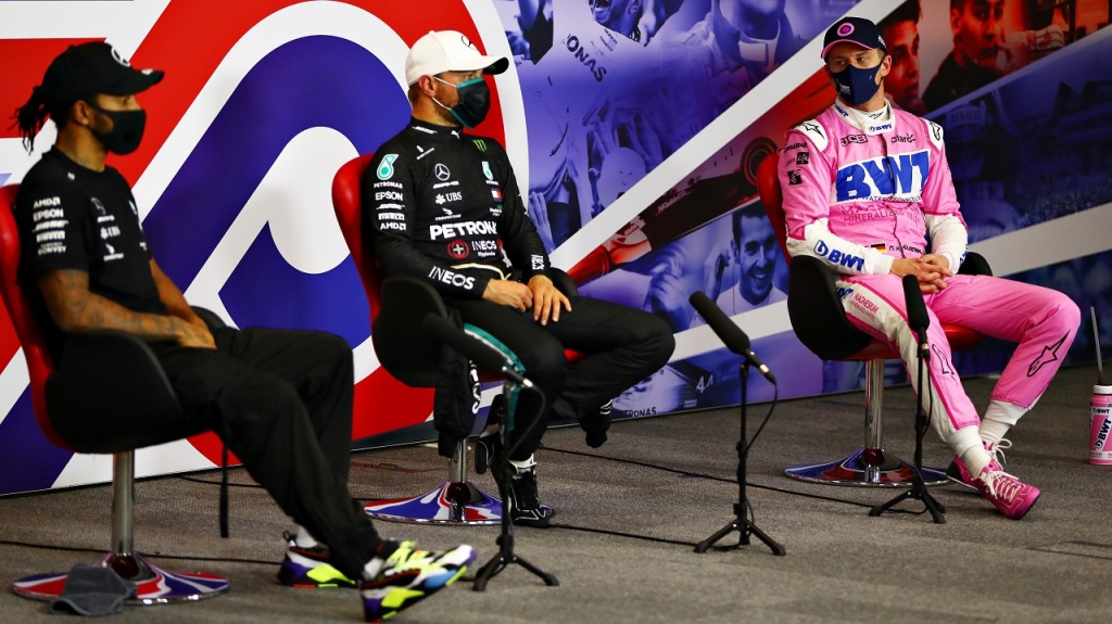 2020年F1 70周年記念GP ルイス・ハミルトンとバルテリ・ボッタス(メルセデス)とニコ・ヒュルケンベルグ(レーシングポイント)