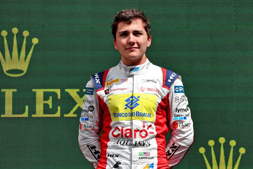 2022年FIA F2第3戦イモラ レース1 2位表彰台を獲得したエンツォ・フィッティパルディ(チャロウズ・レーシングシステム)