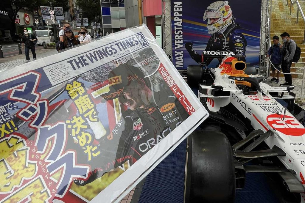 レッドブル、フェルスタッペンの戴冠を記念し渋谷109で号外を配布。ありがとうカラーのRB16Bも展示