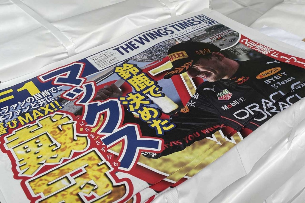 マックス・フェルスタッペンのタイトル獲得を記念し渋谷109で配布されたレッドブルの“号外”