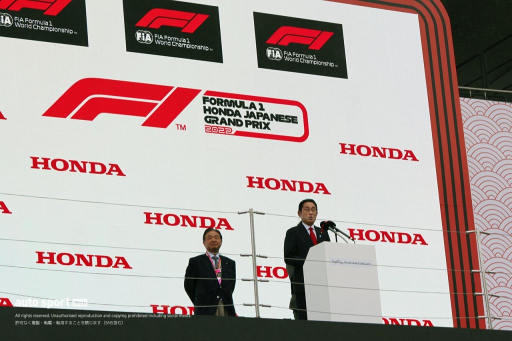 岸田文雄首相、F1日本GP鈴鹿サーキットに来場。表彰台から9万人のファンにアピール