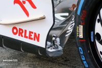 こちらはアルファロメオC42のフロアエッジ。フロアのフロント側ではフロア下から外に空気を流したい。その後方ではフロア後方〜ディフューザーに向けて空気を取り込みたい。さらにその後方では、フロア下の流れに邪魔な空気が入らないようブロックしたい。役割の異なる空気の流れを精度高く制御しようと、苦労した跡が見られます。