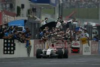レース中の給油が可能な時代で、ピット戦略によってスタート時のマシン重量(燃料搭載量)が違ったわけだが、レース序盤はチームメイトでマシンが重いジェンソン・バトンが、軽い琢磨の前を走るという(チームにとって)チグハグな状況が生まれ、琢磨には厳しい展開となってしまった(バトンに対して申し訳ない言い方にはなるが)。